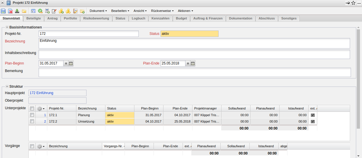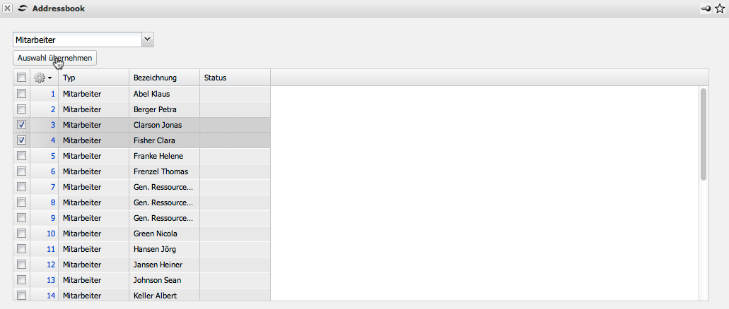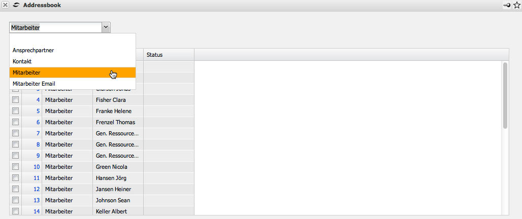 … die relevanten Stammdaten im System (Kontakt, Ansprechpartner oder Mitarbeiter), die entsprechend über die Auswahlbox geladen werden.