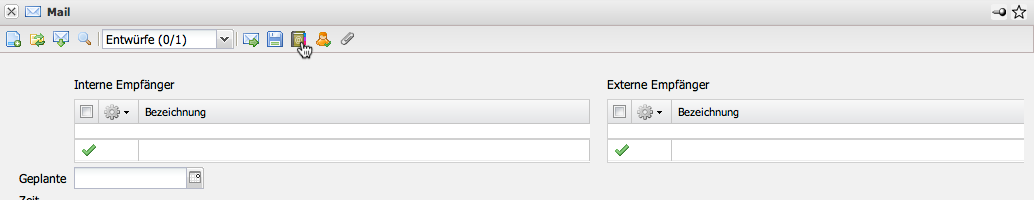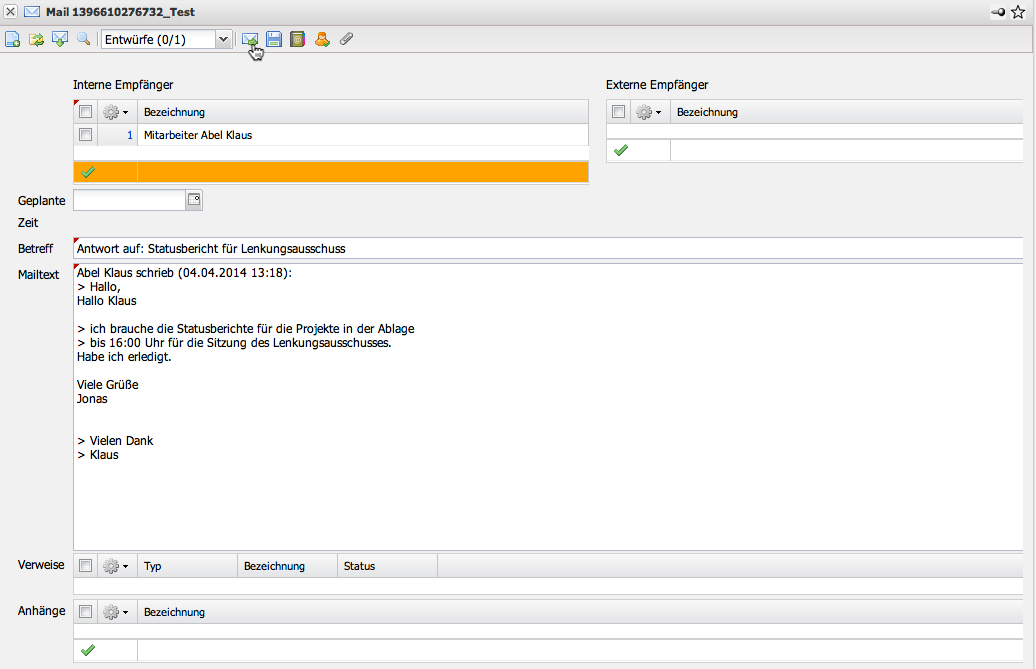 Mit Hilfe des Button “speichern in Ordner Draft” wird die Mail abgespeichert.