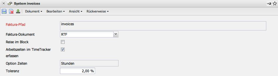 - Fakturadokument: In dieser Auswahlbox wird die Art der Dokumenterzeugung für Angebote, Rechnungen und Zahlungserinnerungen definiert. Zur Auswahl steht die Erzeugung als HTML- oder RTF-Datei.
