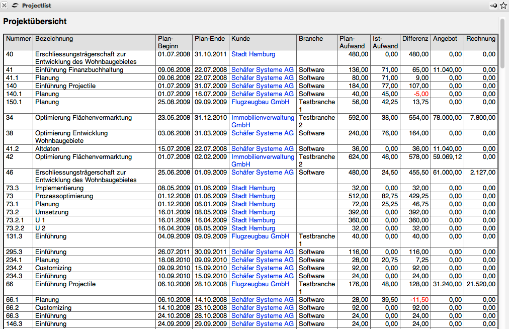 … und liefert dann über alle, nach Kunden sortierten Hauptprojekten, folgende Auswertung: