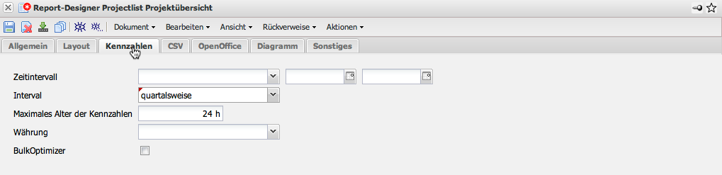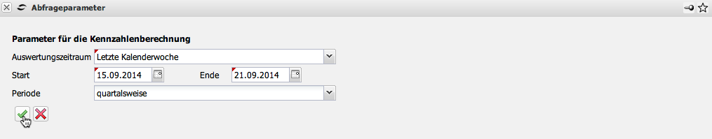 Auf dem Reiter “Kennzahlen” kann ein Zeitintervall und die Periode für die Abgrenzung (hier: quartalsweise) eingegeben werden. Diese Eingaben sind bei der Ausführung die Vorbelegungen im Zwischendialog.