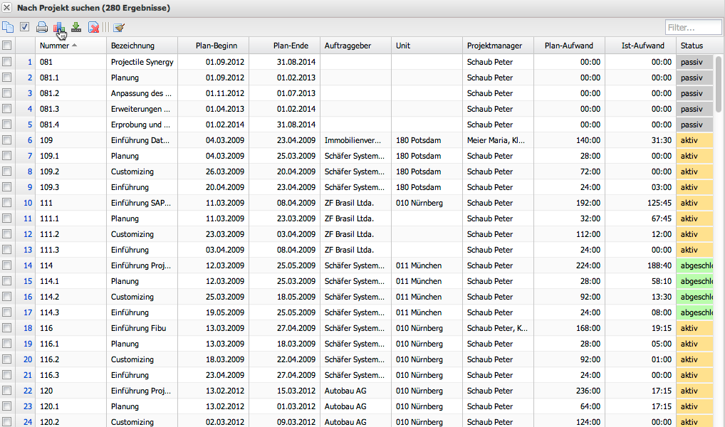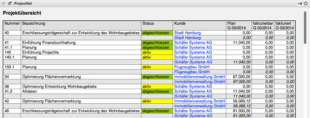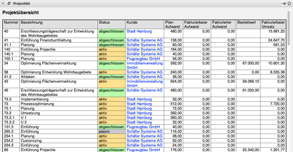 Im folgenden Beispiel werden in einer Projektübersicht Kennzahlen ohne Abgrenzung verwendet.