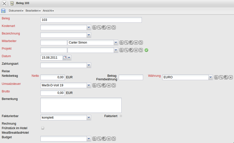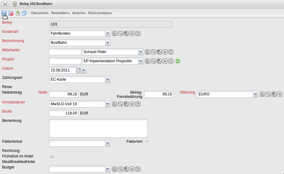 … die restlichen Informationen ausgefüllt und der Beleg abgespeichert.