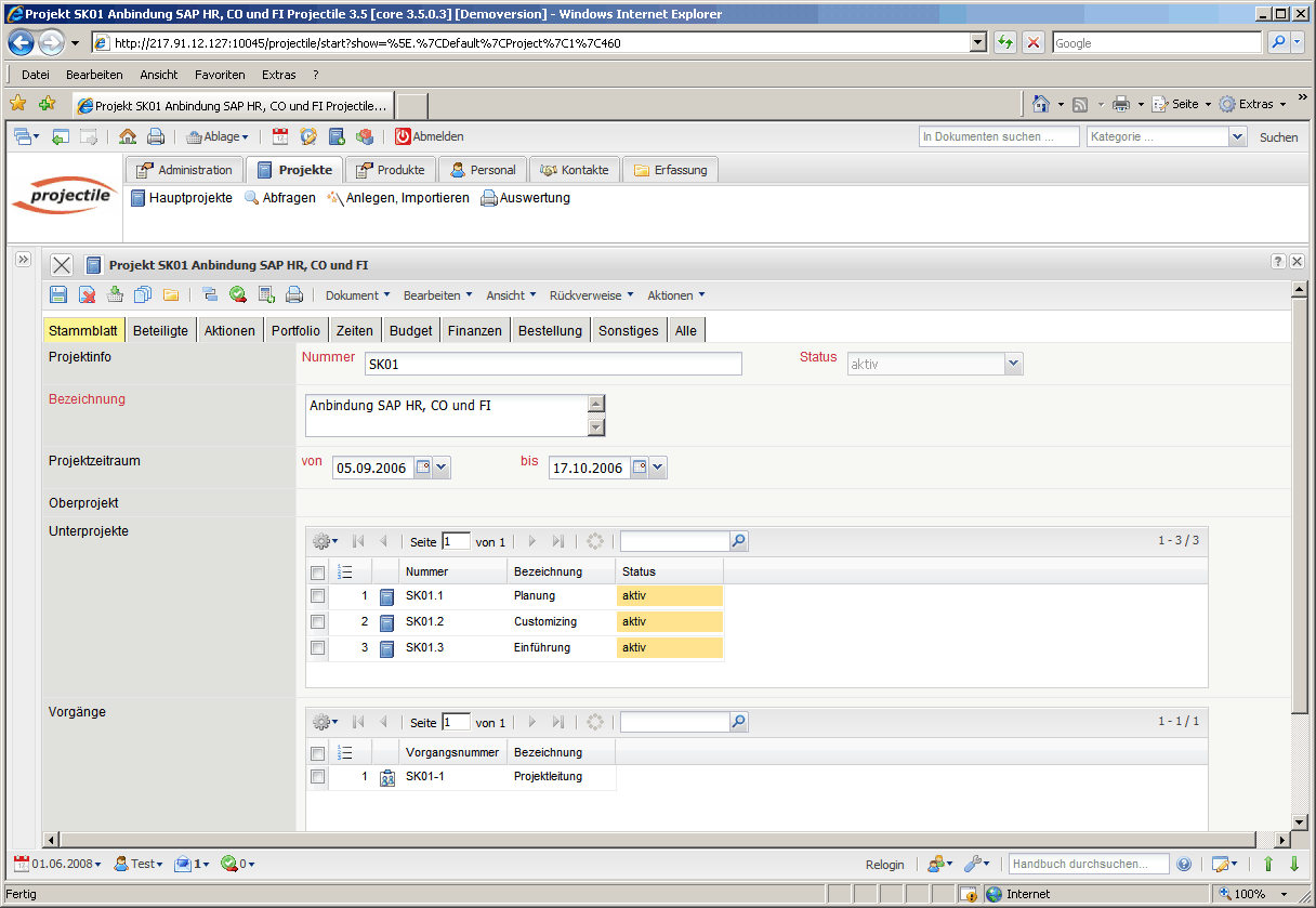 Der Erfolg im Einsatz jeder betriebswirtschaftlichen Software ist im besonderen von der Akzeptanz ihrer Benutzer abhängig. Daher wurde bei der Konzeption und Umsetzung von Projectile hohen Wert auf eine einheitliche, einfache und komfortable Bedienung gelegt. Jede Dokumentenansicht im System ist in ihrem Aufbau und ihrer Benutzerführung einheitlich gestaltet.