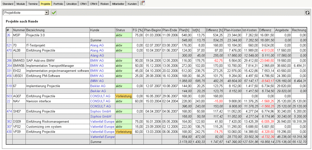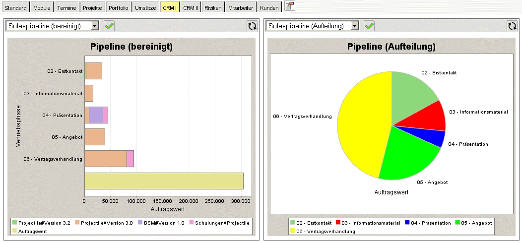 Der Benutzer kann den Eingangsbildschirm frei wählen und dabei beispielsweise selbst definierte tabellarische Auswertungen (siehe Abbildung 3) oder graphische Auswertungen (siehe Abbildung 4) integrieren.