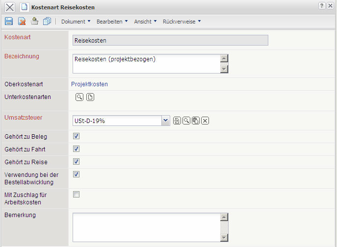 • Bemerkung: Dieses Feld ermöglicht die Eingabe von Bemerkungen zur Kostenart.