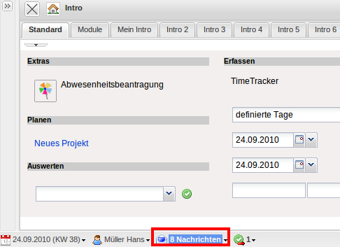 Über die Anzeige der Nachrichten in der Status-Leiste sehen Sie Ihre offenen Nachrichten und können direkt auf sie zugreifen.