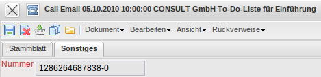 Auf diesem Reiter ist die Nummer des Calls hinterlegt. Diese Nummer wird vom System automatisch vergeben, ist jedoch aber vom Anleger des Calls, vor dem Abspeichern einmalig veränderbar.