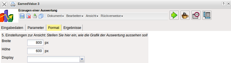• Breite: Mit diesem Feld wird die Breite in Pixel (px) der graphischen Auswertung festgelegt.