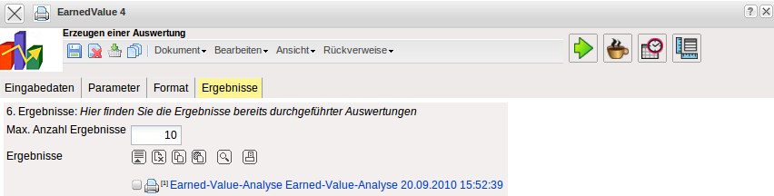 In diesem Reiter befinden sich die maximale Anzahl der Ergebnisse und die Ergebnisse der bereits durchgeführten Auswertungen.