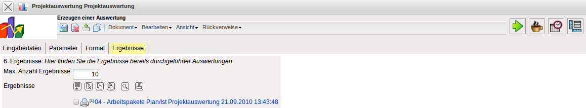 In diesem Reiter befinden sich die maximale Anzahl der Ergebnisse und die Ergebnisse der bereits durchgeführten Auswertungen.