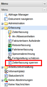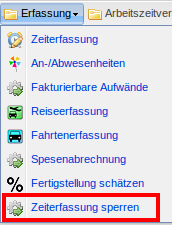 Die Funktion “Zeiterfassung sperren” kann im oberen Menü …