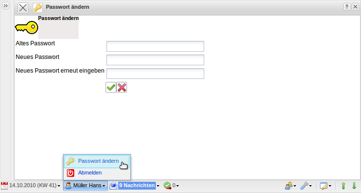 Anmerkung: Die Passwörter werden verschlüsselt in der Datenbank abgelegt. Wenn das Passwort vergessen wird, muss der Administrator das Passwort in der Mitarbeiterverwaltung neu setzen!