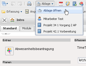 Die persönliche Ablage kann auch aus der oberen Menüleiste heraus aufgerufen werden. Unter “Ablage” befindet sich eine Funktion …
