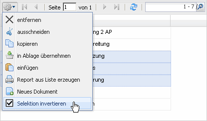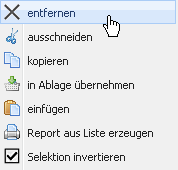 - Einträge invertieren: Die Selektion wird invertiert, also alle unmarkierten Einträge werden markiert, bei allen markierten wird die Markierung entfernt.