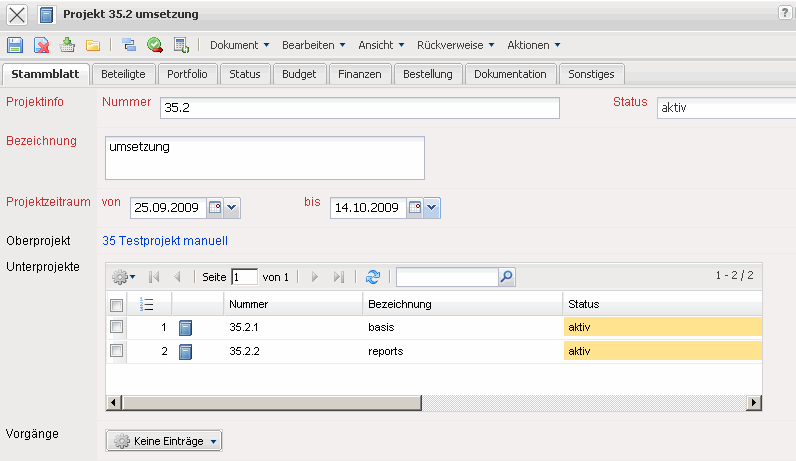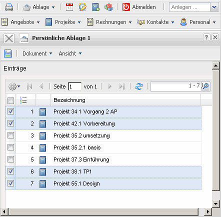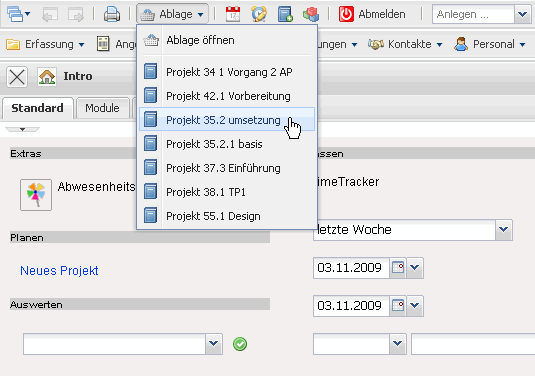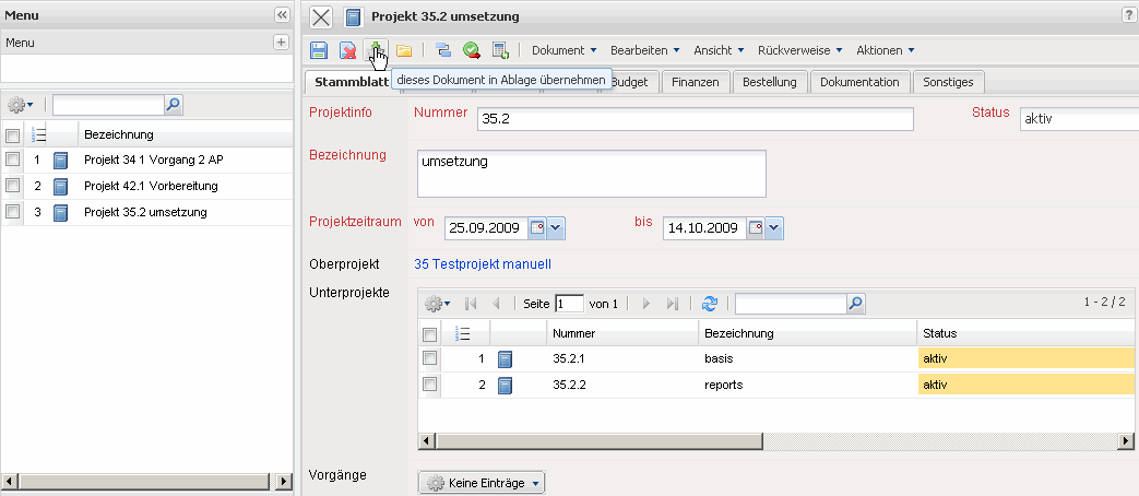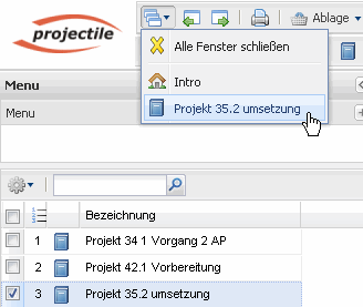… und durch Klicken auf die Einträge der Ablage (hier Projekt 35.2 umsetzung) …