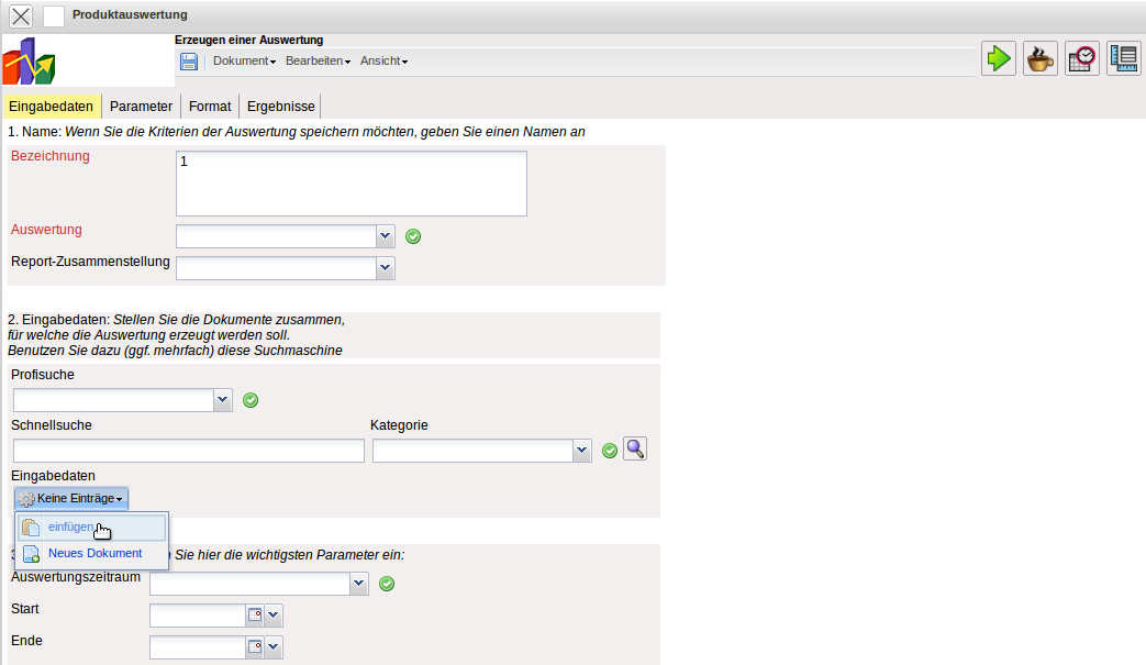 - Report erzeugen: Mit Hilfe des ReportDesigners) können Reports über die Daten erstellt werden.