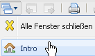 … mit Ausnahme des Arbeitsbereiches (Intro) geschlossen. Alternativ kann mit der “Home”-Funktionalität in der oberen Menüleiste …
