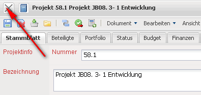 Zum Schließen eines Dokumentes in der Liste, kann der Schließen-Button genutzt werden …
