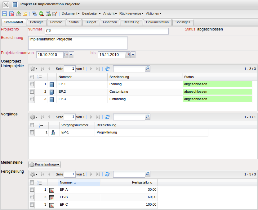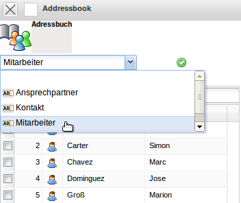 … die relevanten Stammdaten im System (Kontakt, Ansprechpartner oder Mitarbeiter), die entsprechend über die Auswahlbox geladen werden.