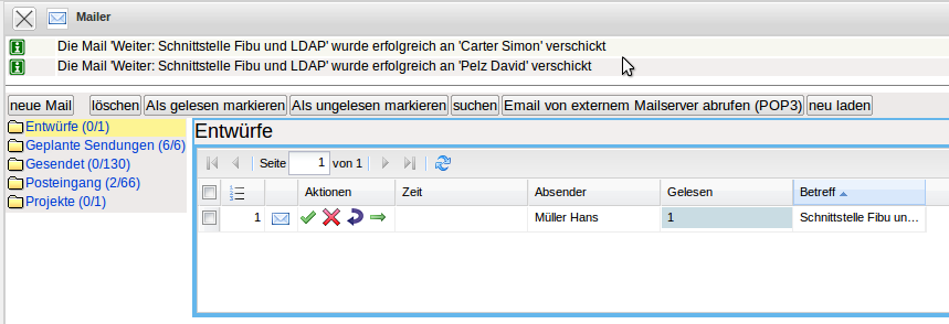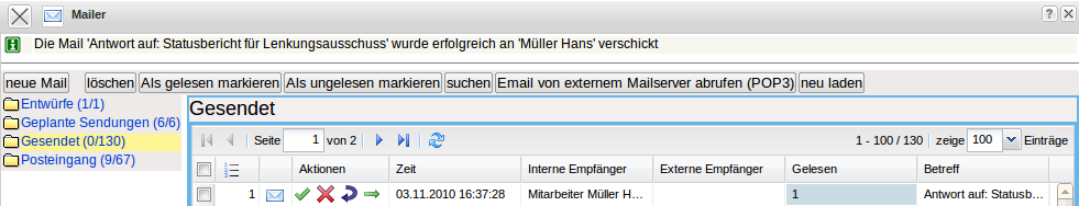 Mit Hilfe der Funktionalität “Mail öffnen” kann die interne Benachrichtigung geöffnet werden.