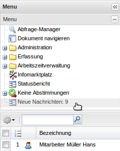 Im Arbeitsbereich des Benutzers Hans Müller, wird bei der nächsten Aktion im System die Nachricht angezeigt.