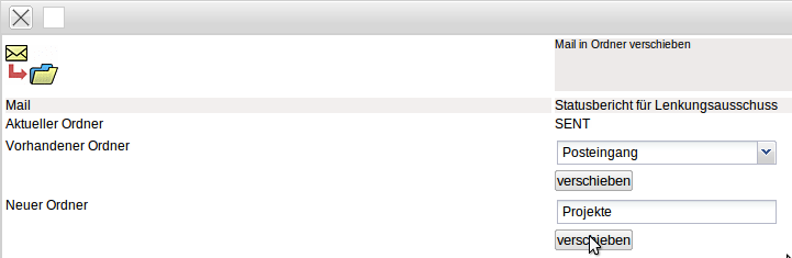 Diese Funktionalität öffnet einen Dialog, wo entweder ein bestehender Ordner ausgewählt werden kann, oder ein neuer Ordner angelegt wird. Im Beispiel wird mit “Verschieben” ein neuer Ordner mit dem Namen “ Projekte” angelegt …