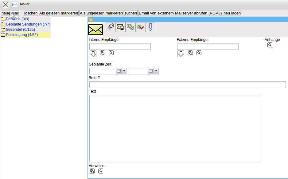 Mit Hilfe der Funktionalität “Neue Mail” kann eine neue Nachricht erstellt werden.