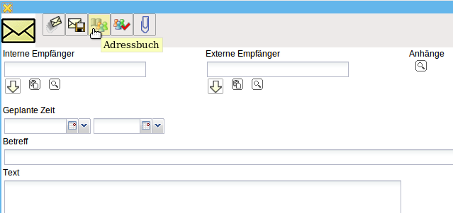 Im zentralen Bereich des Mailsystems öffnet sich eine neue Nachricht. Für diese Nachricht werden zunächst die Empfänger bestimmt. Im Eingabefeld Empfänger können die Empfänger der Nachricht manuell oder mit Hilfe des Adressbuches eingegeben werden. Bei der manuellen Eingabe wird der Empfänger in das Eingabefeld geschrieben und die Eingabe bestätigt (es können hierbei auch mehrere Empfänger definiert werden).