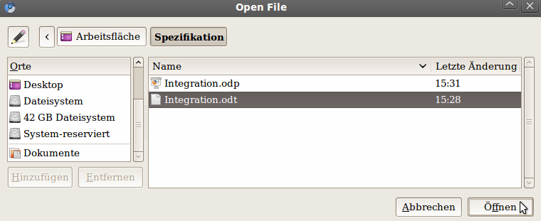 … klickt man dieses an und drückt den Button “Öffnen”, nun wird das Dokument dem Dialog zugefügt.