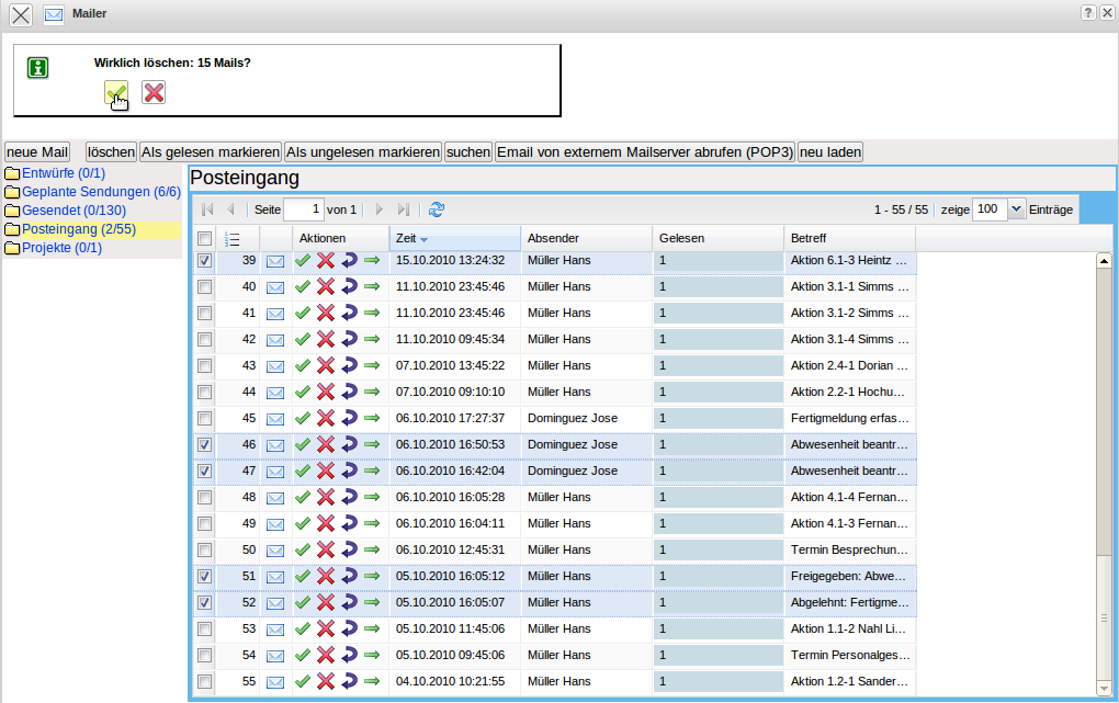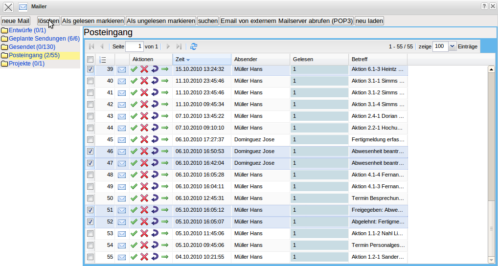 Im Mailsystem können auch Nachrichten gelöscht werden. Mit Hilfe der Funktionalität “löschen”, werden alle markierten Nachrichten eines Ordners zum löschen vorbereitet und …