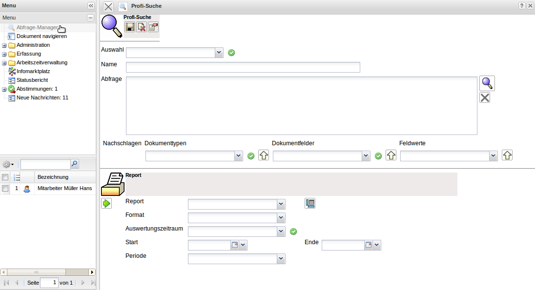 Zunächst wird die Profi-Suche in der Funktionsleiste geöffnet und hier entweder eine neue Abfrage erstellt oder eine vorhandene Abfrage verwendet.