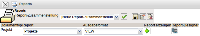 Der Reportgenerator bietet, über die Standardauswertungen hinaus, eine weitere Möglichkeit, den Datenbestand von Projectile auszuwerten. Er kann aus jeder Suchabfrage heraus aufgerufen werden. Als Ausgabeformat kann zwischen CHART, CSV, HTML, Browseransicht, PDF, RTF und XLS gewählt werden. Darüber hinaus bietet der ReportMaker mit Hilfe des EDIT-Modus eine komfortable Editiermöglichkeit an. Um einen Report zu benutzen oder zu erstellen, wird eine entsprechende Abfrage benötigt (Schnellsuche oder Profi-Suche von Projectile).