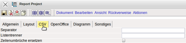 Im Reiter “CSV” können Parameter für die Ausgabeoption “CSV” definiert werden. Dieses Format wird für Tabellenkalkulationen und Schnittstellendateien verwendet.