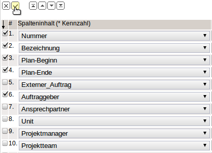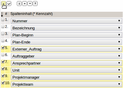 Mit Hilfe dieser Funktionalitäten können die Zeilen modifiziert werden. Derzeit stehen sechs Auswahlmöglichkeiten zur Verfügung: