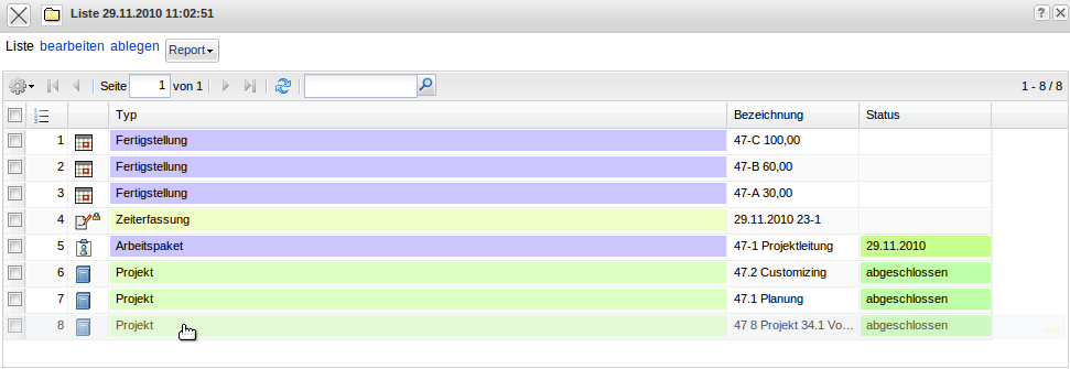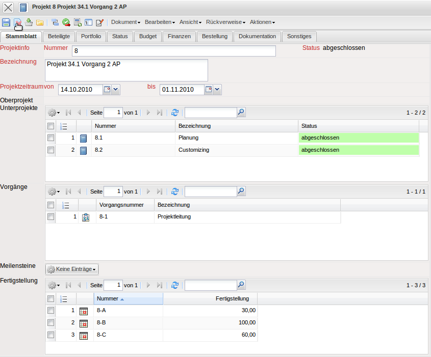 Im folgenden Beispiel wird das Projekt “8 Projekt 34.1 Vorgang 2 AP” in das Projektarchiv verschoben. Dieser Vorgang kann bei größeren Strukturen einige Zeit dauern.