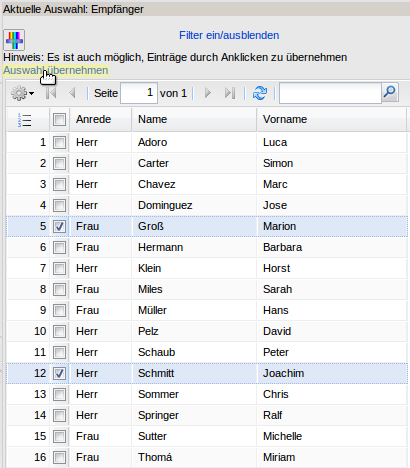 Für die Zuordnung einzelner Mitarbeiter (Empfänger) wird mit Hilfe der Funktionalität “alle verfügbaren Dokumente” eine entsprechende Auflistung angezeigt. Hier können nun die Mitarbeiter ausgewählt und übernommen werden.