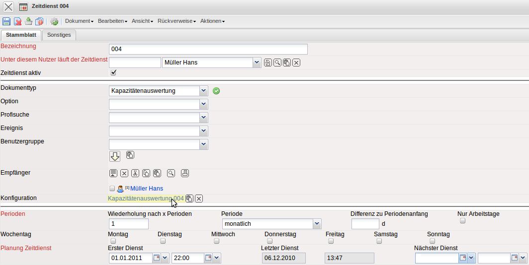 … öffnet sich ein Zeitdienst-Dokument mit Vorbelegungen. Hier wird u.a. die Konfiguration direkt übertragen.