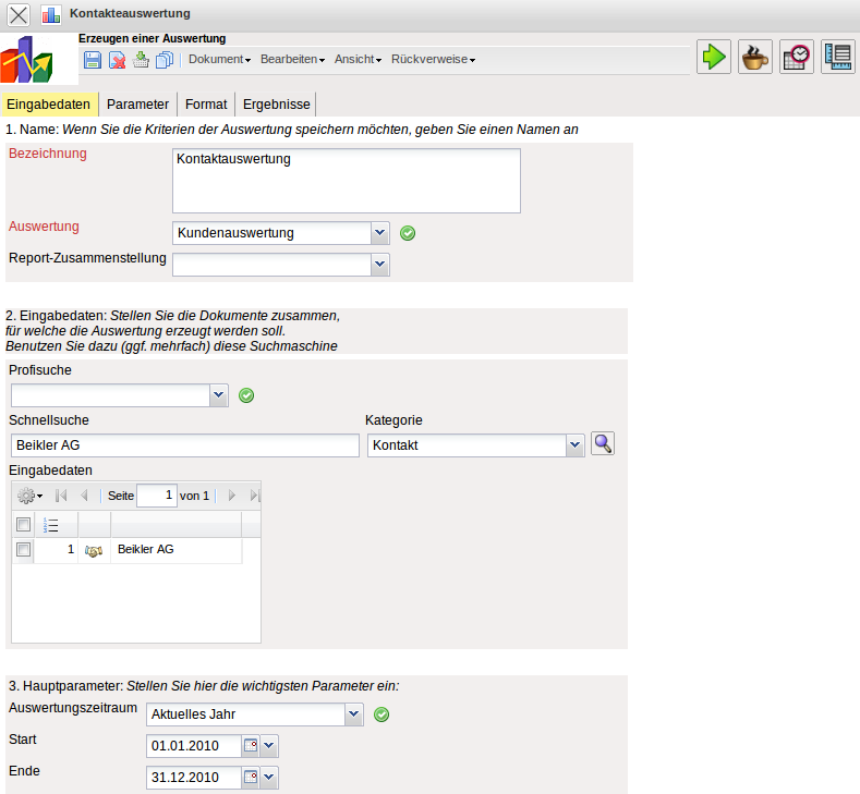 Im folgenden Beispiel wird eine Kontaktauswertung geöffnet …
