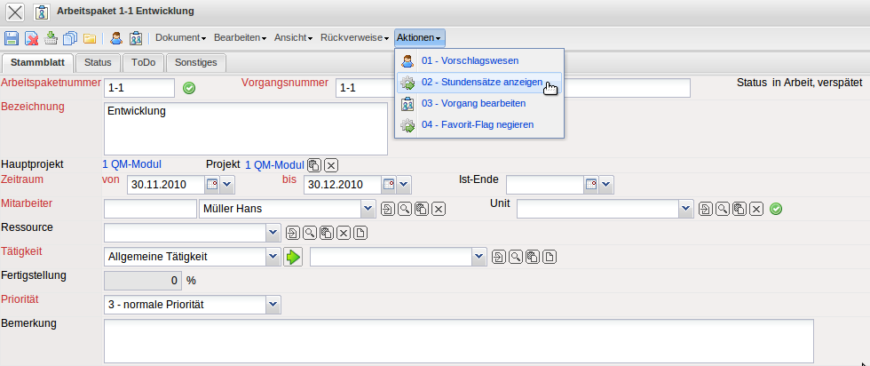 Anmerkung: Die Kundenweisen Tätigkeiten übersteuern die Tätigkeiten, haben aber eine niedrigere Priorität als die Projektweisen Tätigkeiten.