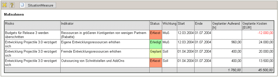 … und für die Indikatoren können beliebig viele (Gegen-)Maßnahmen erfasst und überwacht werden. Der Status der Maßnahmen kann im Auswertungssystem permanent abgefragt werden.