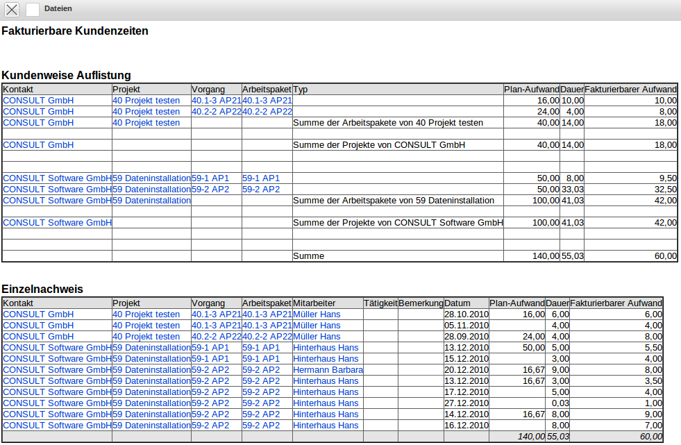 Fakturierbare Kundenzeiten