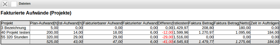 Fakturierte Zeit (Projekte)