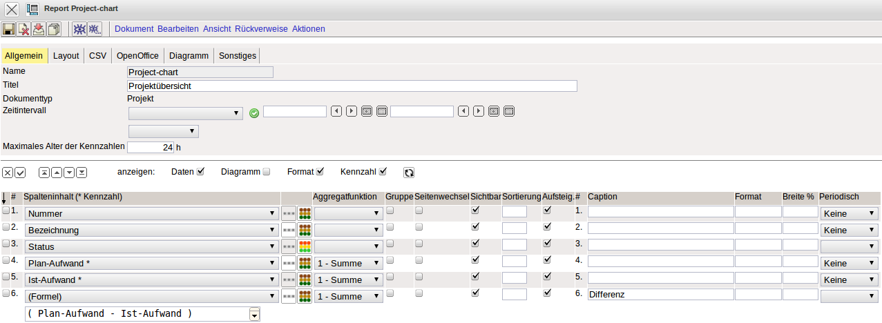 Im folgenden Beispiel wird aus der tabellarischen Projektliste eine graphische Auswertung erstellt. Zunächst wird wieder das Grundgerüst des Reports erzeugt (hier durch Kopie der Projektliste).