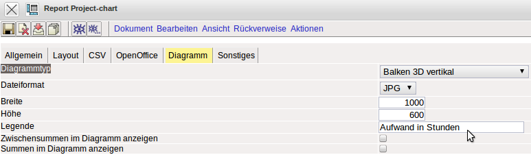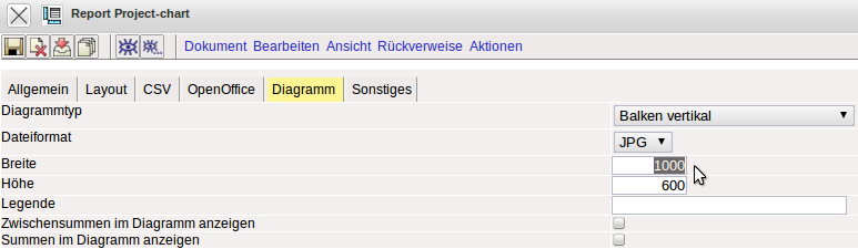 Im Reiter “Diagramm” können verschieden Einstellungen zur Graphik vorgenommen werden (Diagrammtypen, Breite, Höhe, Legende, Summen).