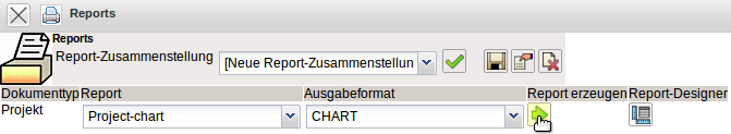 Nach dem Speichern wird der Report geschlossen und im ReportMaker der neue Report und das Ausgabeformat CHART für graphische Auswertungen ausgewählt.