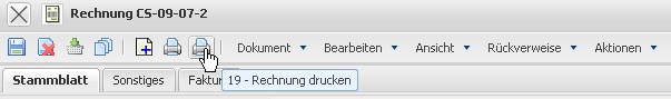 Die fertige Rechnung kann nun mit Hilfe eines Internet-Browsers oder der Standardtextverarbeitung angezeigt und ausgedruckt werden. Dazu betätigt man die Aktion Fakturadokument drucken.