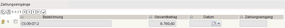 Hier kann bei Zahlungseingang des Kundens für diese Rechnung der Eingang vermerkt werden (auch Teilzahlung). Diese Informationen gehen in die Fakturaauswertung und die Auflistung der offenen Posten ein.