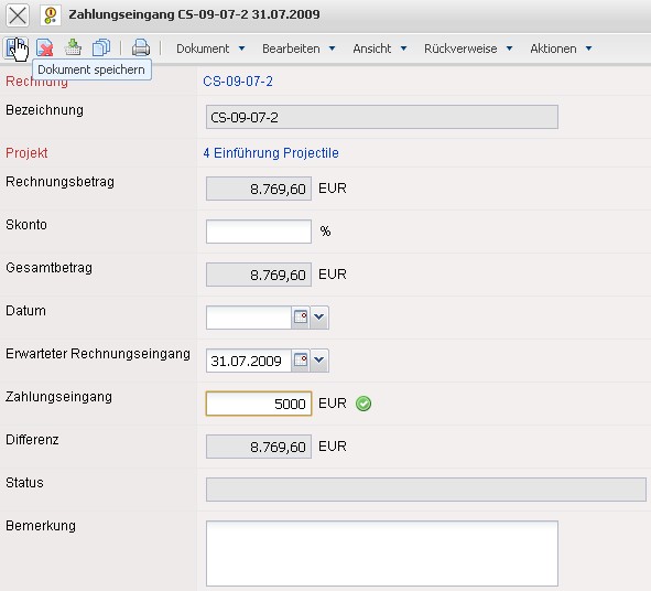 … und ein Dokument Zahlungseingang angelegt.