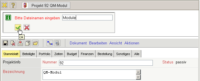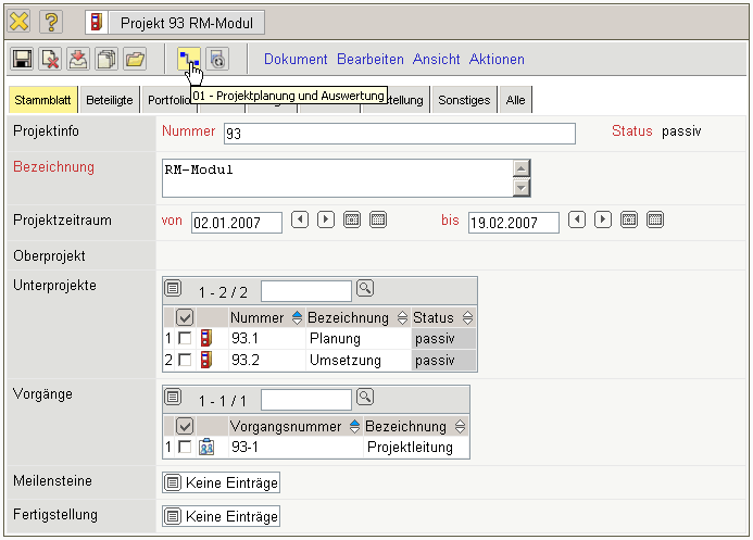 … wird die gesamte Projektstruktur angelegt. Mit Hilfe der Aktion “01 - Projektplanung” kann die Struktur eingesehen und verändert werden.